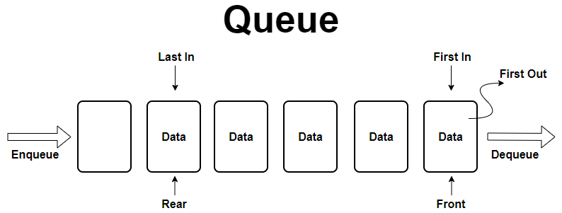 큐는 FIFO, First-In-First-Out 선입선출로 처리됩니다. 지난번에 스택을 정리할 때 테니스공, 셔틀콕을 넣는 통에 스택을 비유 했었는데, 큐의 경우에는 다른 예시 보다 책 예시가 좋은 거 같아서 적어본다. 우리가 흔히 식당에 들어가기 위해서 대기줄을 서는 경우가 있는데 그 때 제일 먼저 대기줄에 선 손님분들 부터 입장을 하게 된다. 이런 식으로 작동을 하는게 큐라고 보면 된다.