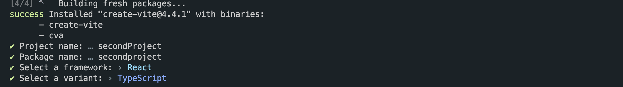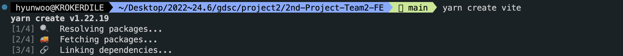 vite를 통해서 리액트 프로젝트를 시작하는 방법이 여러 개가 있겠지만 이번에는 "yarn create vite"로 시작을 해보았다.